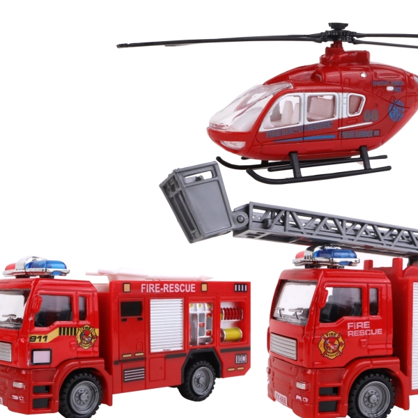 COFFRET POMPIERS HELICO + 2 VEHICULES